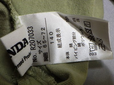 サイズはS、M、L、LLの4種でLを購入。素材は綿100%。日本製。