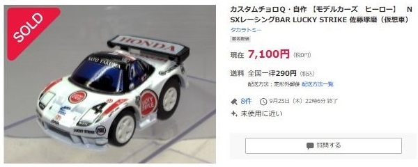 ▲2021年9月8日にヤフオクに初出品された「オリジナルチョロQ モチュール無限NSX-GT SUPER GT GT500 2017 No.16」。入札もしたが予想以上に高騰して脱落。