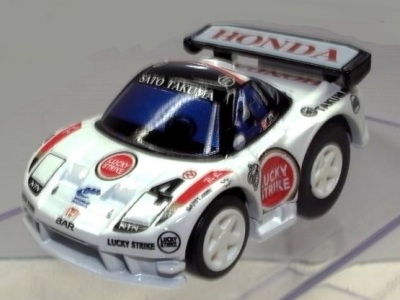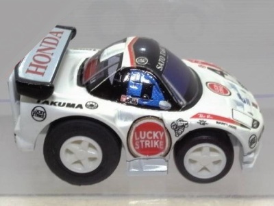 | 2004年9月ヤフオクにて購入。全8種あるアミューズメント景品。サイズも質感もまさにチョロQで、NSXとはどこにも書いてないがどこからみてもNSX。 | |||