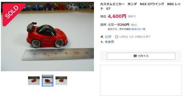 その中にNSXは6種あり、すべて落札されたのですが、そのうち4種は開始価格の1,500円で終了し