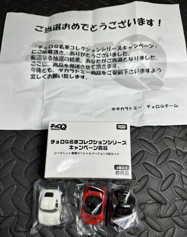 2002年12月中旬 に「お!タカラくじ」が全国のコンビニで発売。オリジナルモデルはセリカGT-FOURとS2000のみで、それ以外は全て定番モデルで、あまり「くじ」としての楽しみはない。これに含まれているNSX-Rも残念ながら定番モデル。ぱっと見では分か