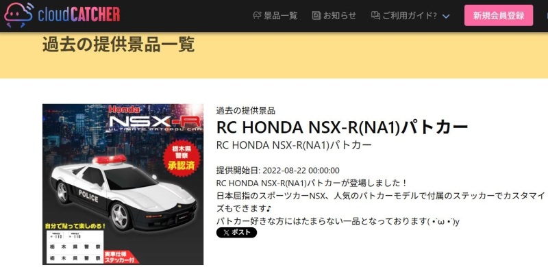 | 新型NSX(三重県警パトカー・警視庁パトカー)アミューズメントVer.28 ?円(税込)・非売品/ピーナッツクラブ | |