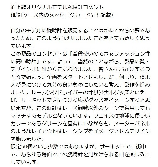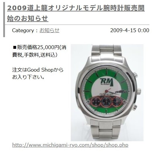 発売の「道上龍選手オリジナル腕時計(50本限定)」です。道上選