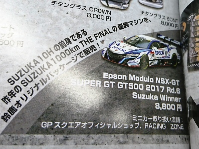 | No.45552 SUPER GT500 2017 Rd.8 Motegi Epson Modulo NSX-GT No.64 \9,504 | |