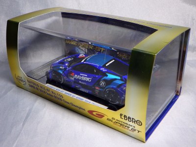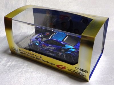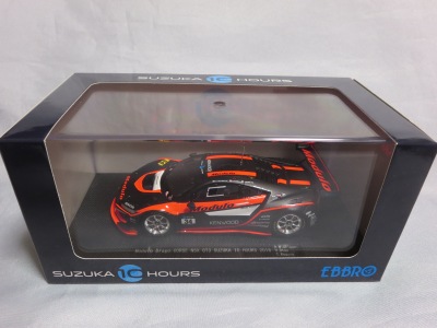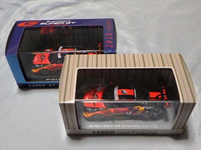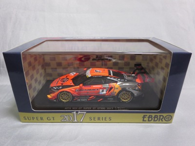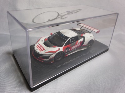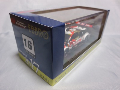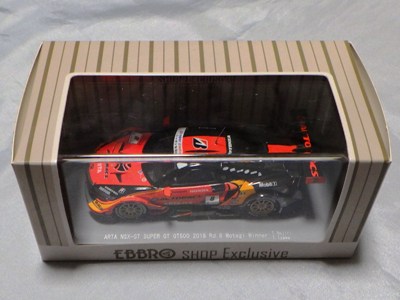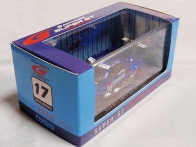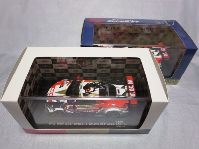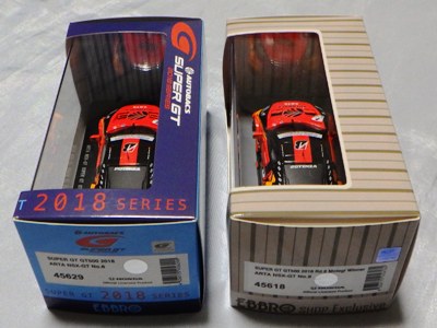 2018年8月29日からエブロのオフィシャルショップで予約を受付を開始した限定商品。在庫がある間は9月3日まで予約可能という商品だったのだが、8月31日に自分が注文した直後に品切れに。商品は9月4日に到着。 エブロの1/43スーパーGTシリーズは、以前はレースにデビューしたマシンが、その年度中に商品化されるのが恒例であったが、NSXコンセプトGTがデビューした年でもある2014年仕様は、1年遅れの2015年に商品化。2015年仕様も2016年に商品化され、2016年仕様以降は商品化のアナウンスはされるものの、ショップを通して注文を取るだけで、2018年9月現在、未だ1台も発売されていなかった。 つまりこの商品は、2016年仕様の発売を飛ばして、いきなり発売された2017年仕様の第1号。以前は、開幕戦仕様が発売されて、それをベースにした優勝レースの記念モデルが後から製作されることはあったが、 今回はいきなり記念モデルを発売したわけである。2018年シーズン終盤の今、今さら2016年や2017年シーズンの開幕戦仕様を発売しても売れないという判断なのだろう。 8月24〜26日の「SUZUKA 10 HOURS」期間中に、会場の鈴鹿サーキット限定で、背景にドライバーのサインがプリントされたオリジナルパッケージが先行販売されたが未入手(後の参考画像参照)。 |