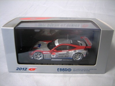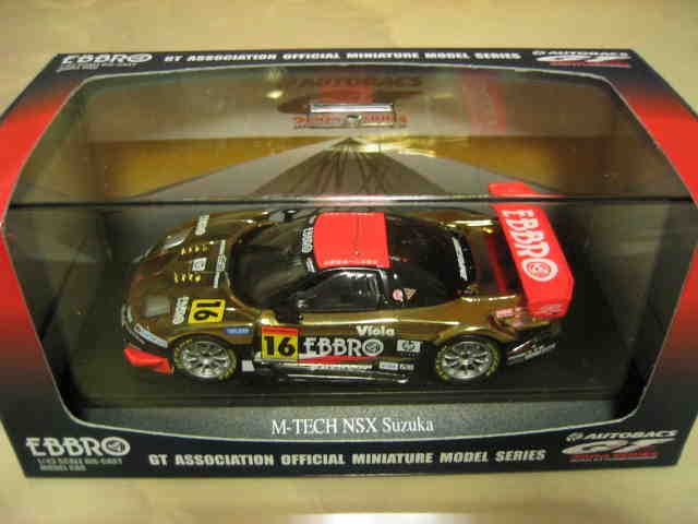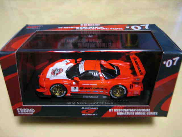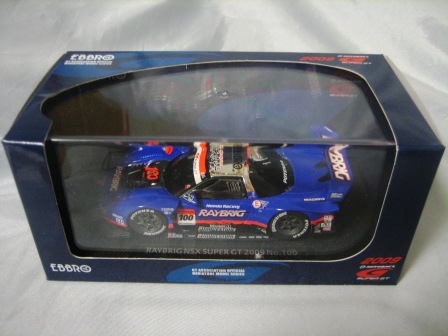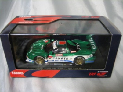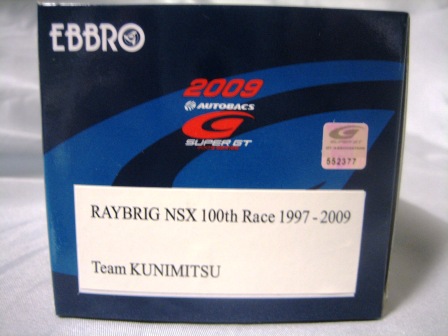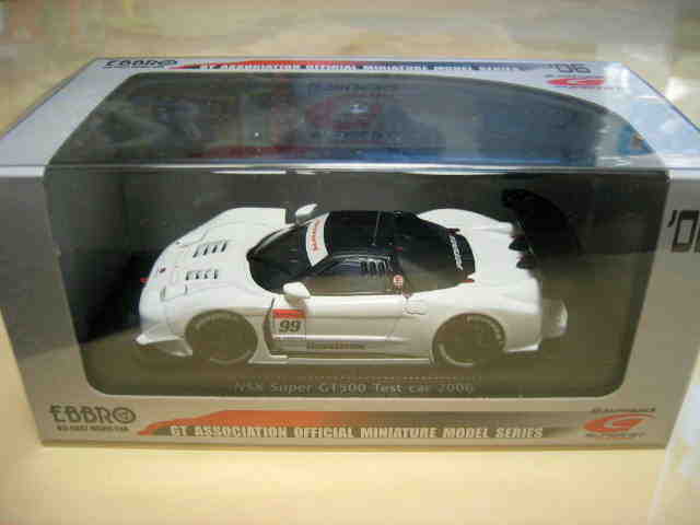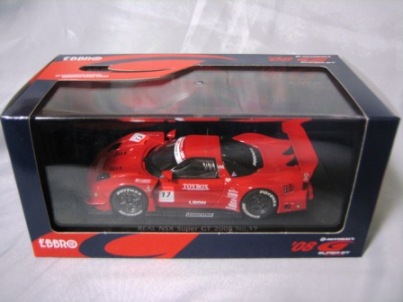 | 2009年8月7日発売。 随分以前からエブロの方から発売が予告されていた1997モデルが新ブランド「レジェンドオブJGTC」としてついに登場。パッケージもつや消しのオリジナルで、価格はSGTシリーズよりかなり高め。 | 2009年9月18日発売。 新ブランド「レジェンドオブJGTC」のNSX第2弾。発売に先立ち、2009年9月12〜13日、GT第7戦開催地の富士スピードウェイにて09仕様との2台セットが300セット限定販売された(詳細は2009年仕様の欄参照)。 | ||