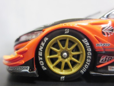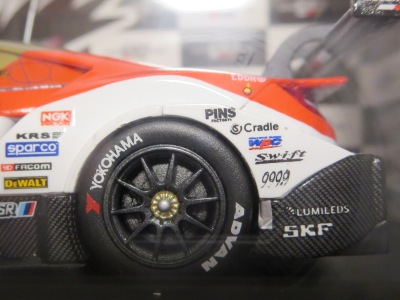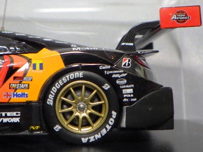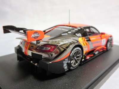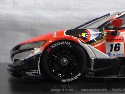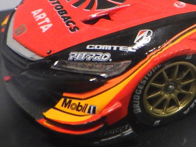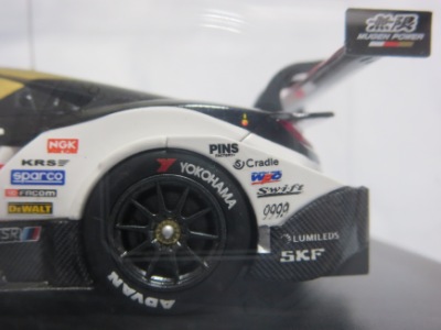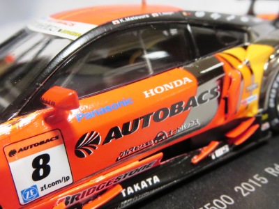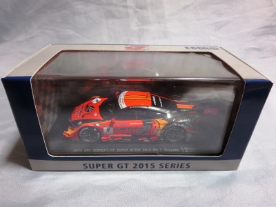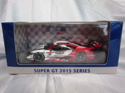 2016年7月15日発売。いつものことながら予定よりかなり遅れて、これが2015年モデル最初のリリース。2015年シリーズGT500参戦15チームの中で最下位だった。 2013年仕様モデルまでは、クリアケース部分は丸いクリアシールが2か所に貼られて固定されていたものが、2014年仕様モデルから脱着可能な筒状のフィルムで、ベースごと全体を包むように固定されるようになったため、気軽にクリアケース部分を取り外して、中の車をじっくり眺めることができるようになった。クリアケース自体もかなりきつめに設計されており、簡単に外れてベースごと車を落下させてしまうことがないようになっている。 |