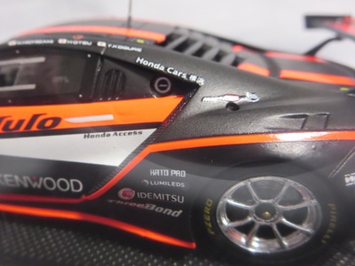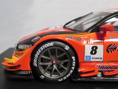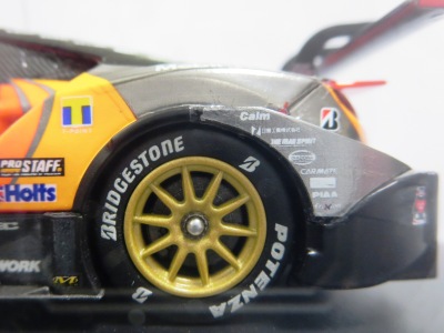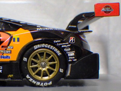 | 2002年のテストで話題になったカーボン地剥き出しのマシンをモデル化。カーボンパターンは再現されずマットブラック塗装となる。GTカーはこの2002年仕様からホイールが固定された。 | 2002年7月12日登場。エースドライバー道上龍選手の負傷による戦線離脱によってピンチとなるも第2戦と第3戦で3位入賞。2016台限定。 | ||