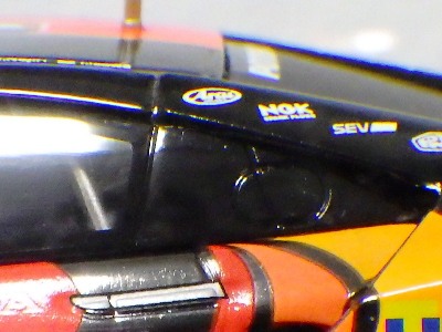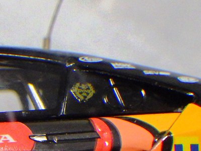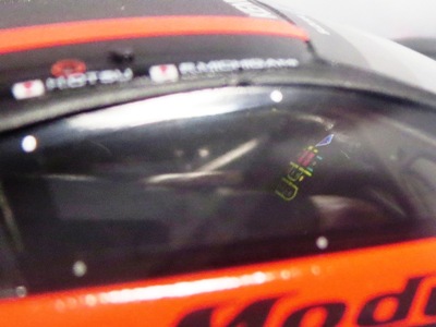 No.45548の第6戦仕様と、このモデルとの違いは以下の通り。 @車体全体のコーポレートカラー(赤・金・黒)がNo.45514は正面から見て、左が黒スタート、右が赤スタートになっており、No.45548は正面から見て、左が赤スタート、右が黒スタートになっている。 グランドスタンドから観客が見る際に、右側が黒スタートの方が見栄えが良いという理由で変更になったとのこと。 ANo.45548には鈴鹿スポットで搭乗したジェンソン・バトン選手の名前が追記されている。 |
