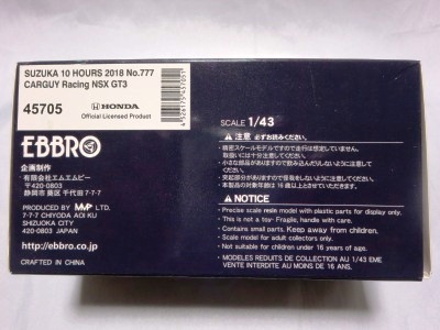 | No.45654 SUZUKA 10 HOURS 2018 CARGUY Racing NSX GT3 通常パッケージ \13,200税込・\12,000税別 | |