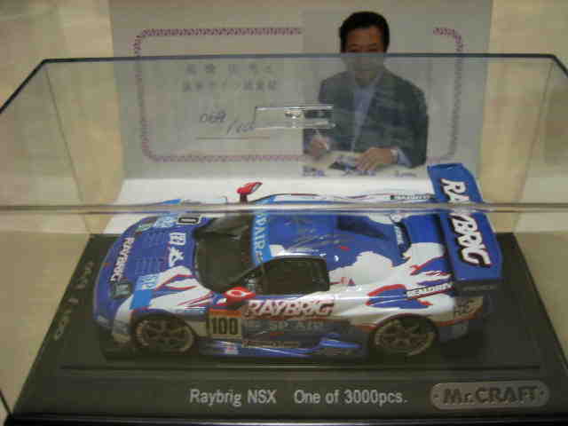ベース車は、NSXとスカイラインGT-R(KPGC10)50勝記念車の2種で、各100台の限定販売。通販の発送は12月1日以降とのことだったが、12月1日に届いた。サインはシルバーのサインペンで入っており、台座にも直筆のシリアルナンバーが入る(これはスタッフによるものか)。さらに台座にはミスタークラフトロゴのエッチングプレートも貼付。外箱上部には「ミスタークラフトオリジナル」というステッカーが貼られ、カラーの認定書が付属する。 「ミスタークラフトオリジナル」としては、レイブリック1998の台座にチーム国光のステッカーが貼られたものも存在し、ヤフオクでまれに出品されるが未入手である。 2019年9月25日に沖縄から、その1998年仕様と2002年仕様の2台セットが開始価格26,800円で出品された。 |