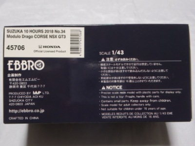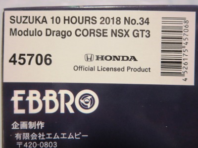 | No.45706 SUZUKA 10 HOURS 2018 Modulo Drago CORSE NSX GT3 \12,000税込 | |