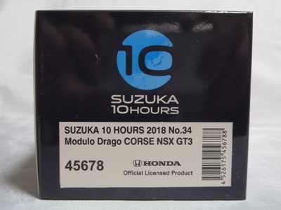 | No.45678 Modulo Drago CORSE NSX GT3 SUZUKA10HOURS 2018 No.34 一般10HOURSパッケージ \13,200税込・\12,000税別 | |