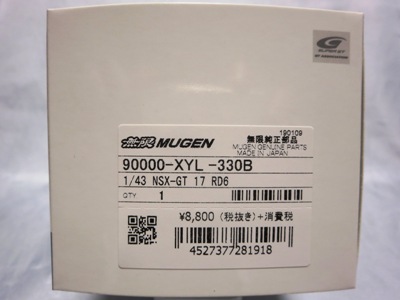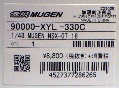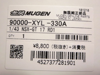 | No.45627(90000-XYL-330C) モチュール無限 NSX-GT SUPER GT GT500 2018 No.16 無限オリジナルパッケージ \9,680税込・\8,800税別 | |