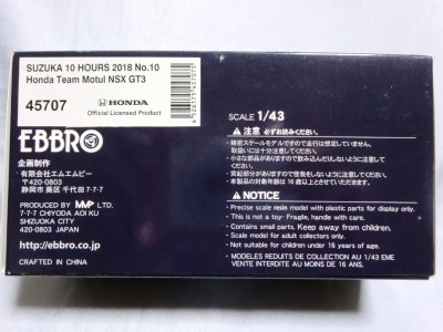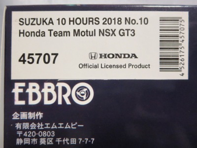 | No.45707 SUZUKA 10 HOURS 2018 Honda Team Motul NSX GT3 \12,000税込 | |
