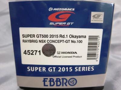 No.45271 RAYBRIG NSX CONCEPT-GT SUPER GT500 2015 Rd.1 Okayama No.100 \9,180 |