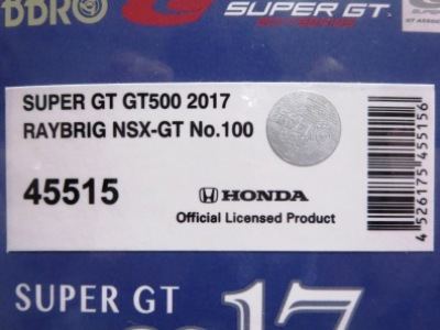 | No.45515 SUPER GT500 2017 RAYBRIG NSX-GT No.100 \9,504 | |