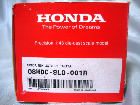 | これまでも様々なチームのマシンをスポンサードしてきたオイルメーカー「カストロール」仕様。JGTC年間ランキング4位。 | HDC(ホンダダイレクトマーケティング)からパッケージだけ換えて販売されたもの。長らく存在を知らず2005年1月にやっと入手。43027と同じ商品。 | ||