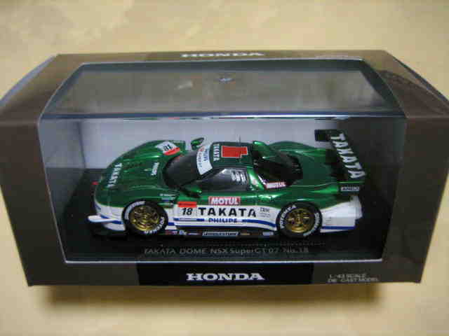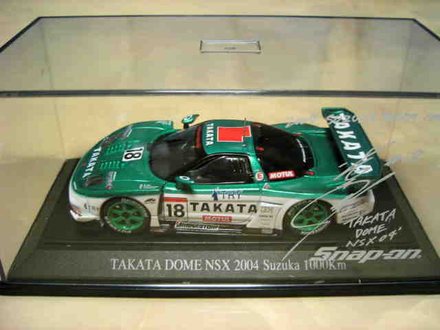 | 2004年8月22日鈴鹿1000km開催当日朝9:00より鈴鹿サーキット内ショップにて50台限定販売。道上龍、セバスチャン・フィリップ両選手の直筆サイン入。タカタはこのレース見事優勝。証明書等なし。 | 2004年9月15日、当初の発売予定からかなり遅れてエプソンNSXと同時に04モデル第2弾として登場。3000台限定。 | ||