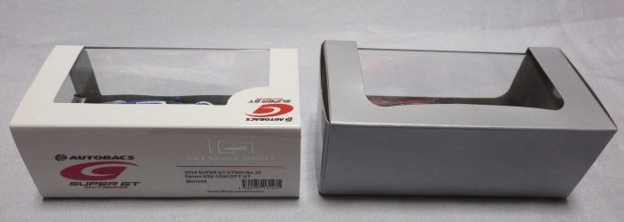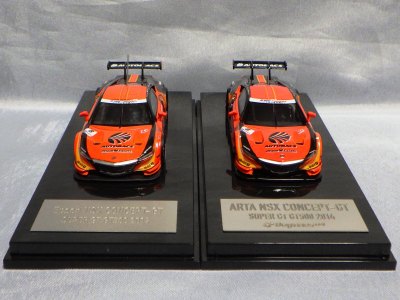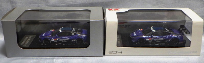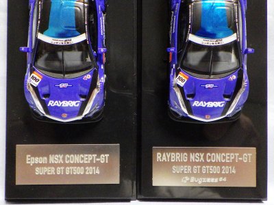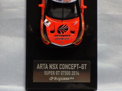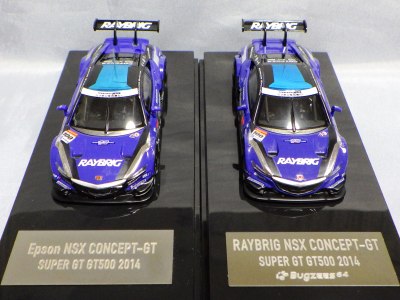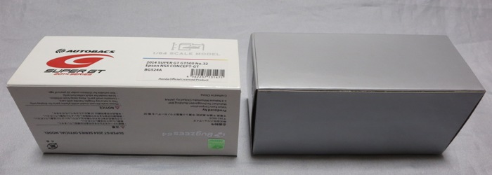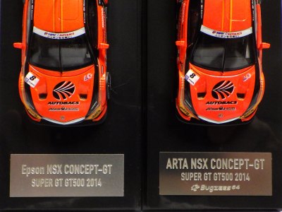 | 2015年9月末から発売延期を繰り返していた1/64GTモデル5種のうち「BG523A ウィダーモデューロNSXコンセプトGT2014」「BG524A エプソンNSXコンセプトGT2014」が2017年7月1日についに発売。バグジーズブランドとしては何と7年ぶりの新作。あまりにも間が開いたため、ショップの方に混乱があり、キャンセル者の確認など対応に追われたようで、届いたのは7月22日であった。残りの3種は7月20日発売。 | |||