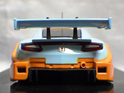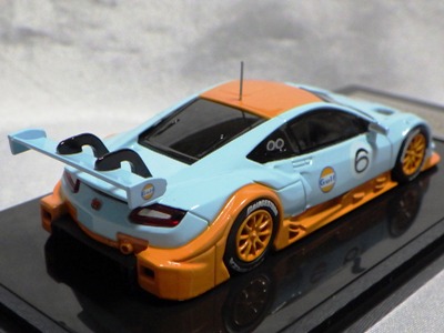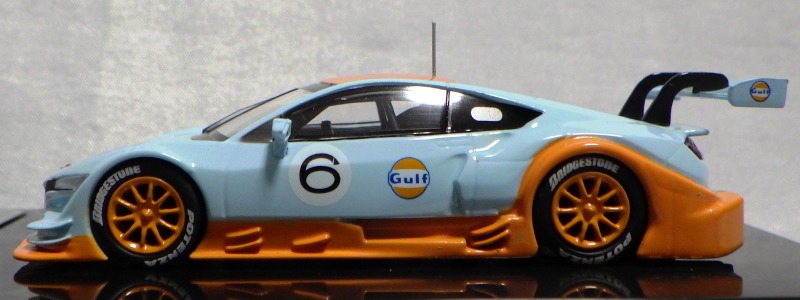 バグジーズ1/64コピー品9種のうち未入手だった2種のうち、Gulf仕様を2020年12月ヤフオクで入手。 ヤフオクでの初登場の2018年12月18日から2年が経過し、安くなっていたので落札したのだが、パッケージから出すとクリアケースが見事に割れていた。商品説明には一切ダメージについての記載はなかったのだが、「ノークレーム・ノーリターンで」の文字はしっかりあり、面倒なので評価はダメージに触れず「大変よい」にしておいた。 出品者もパッケージの中のダメージにまで気がつかなかったのかもしれないし、運が悪かったということで…。 Gulf仕様は2019年10月24日にTSMのMINI-GTブランドからも発売されているが、今回入手の商品はベースがNSX-GTコンセプトプトということもあり、形状はもちろんカラーリングも結構異なる。 (比較画像を下に掲載) ちなみにGulf仕様のNC1の実車は海外のレースシーンにも存在しない。あくまで想像上のモデルである。 NA1のGulf仕様は海外のプライベートカーとしては存在しているようで、ネット上で画像を見ることができる。 |