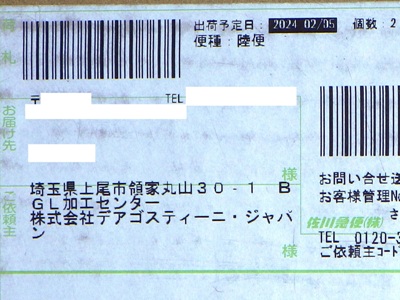 2023年9月3日にデアゴスティーニから送られてきたダイレクトメールで案内があり、翌日注文した。 発売予定日は2024年2月中旬だったが、2024年2月7日に届いた(伝票を見ると発送日は2月5日で配達指定日はない)。 商品名は「ご購入商品」としか記載されていないが、段ボール箱に商品名がデカデカとプリントされているので、それで十分なのだろう。 トータル3万円オーバーの高額商品なのだが、サイズもバカでかくてビックリ。 中に入れるミニカーも未制作なので開封する気はあまりない。 |