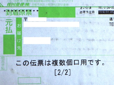 2023年10月12日に出荷され、配達指定日の10月15日に到着。