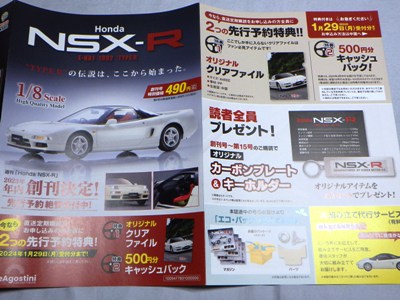 | 1/8 DEAGOSTINI(デアゴスティーニ)週刊Honda NSX(NC1)全国版 第21〜24号エコパッケージ版/各\1,790税込(\1,627+税) | |