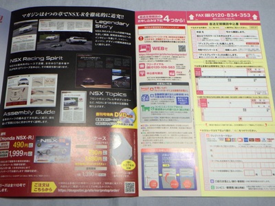 試験販売版には「歴代NSXハイクラスモデルカーコレクション」の宣伝ページがない。 |