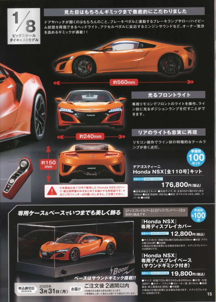 専用ディスプレイカバー/\12,800税込 1/8 DEAGOSTINI(デアゴスティーニ)週刊Honda NSX(NC1) 専用ディスプレイベース/\19,800税込 |