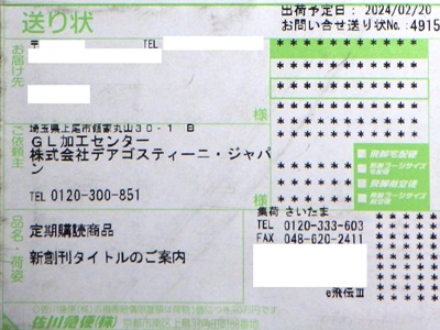 2024年1月11日に発送され、配達日指定の1月14日に第6号と一緒に届いた。 実際の発売日は23024年1月16日。 |