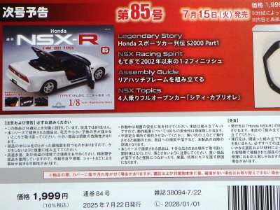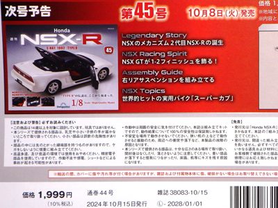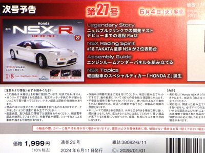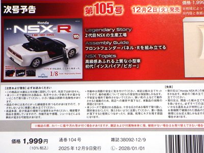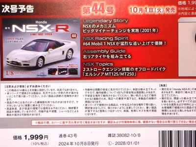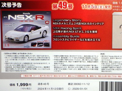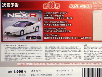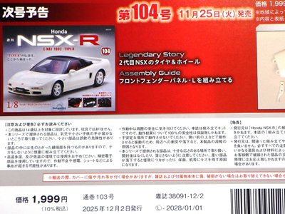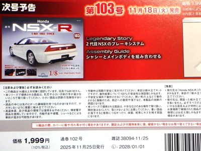 1/8 DEAGOSTINI(デアゴスティーニ)「週刊 Honda NSX-R 1992(NA1)」全国版エコパッケージ 第101〜104号 /各\1,999税込 |