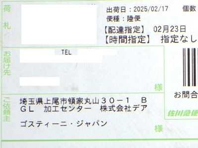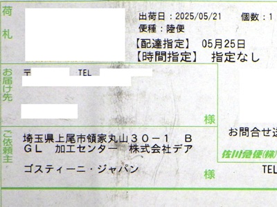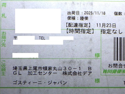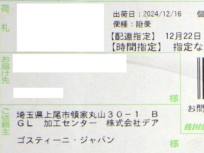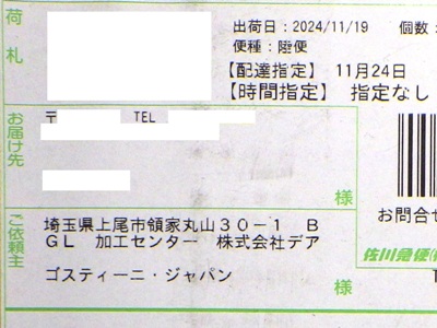 2024年11月19日に発送され、配達日指定日の11月24日に5号セットで届いた。