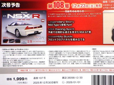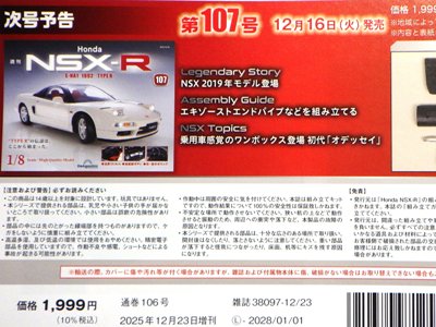 1/8 DEAGOSTINI(デアゴスティーニ)「週刊 Honda NSX-R 1992(NA1)」全国版エコパッケージ 第105〜108号 /各\1,999税込 |