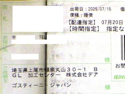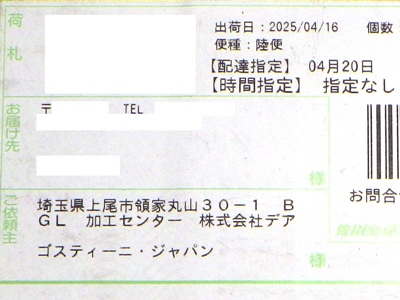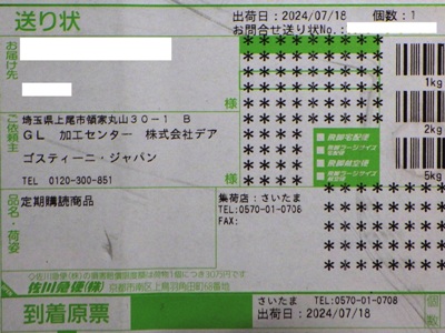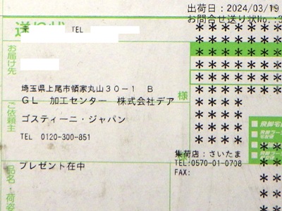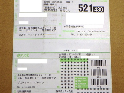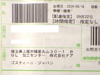 2024年9月18日に発送され、配達日指定日の9月22日に4号セットで届いた。
