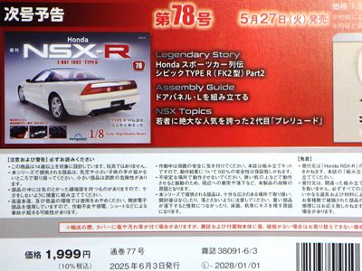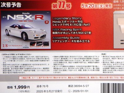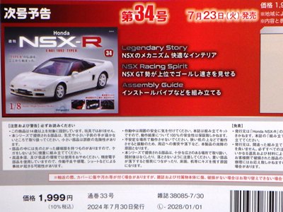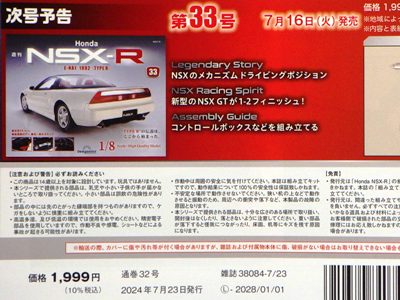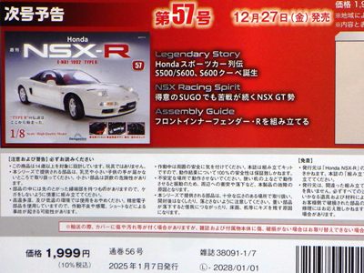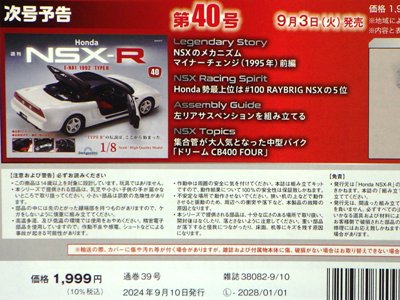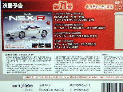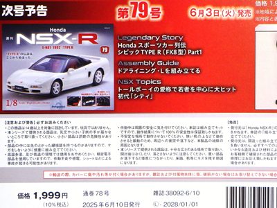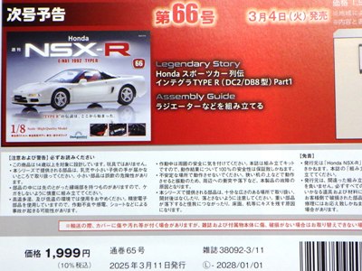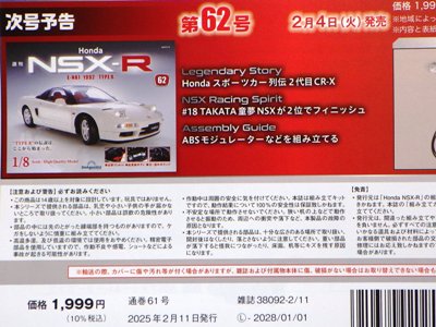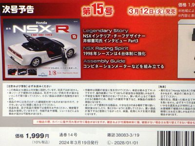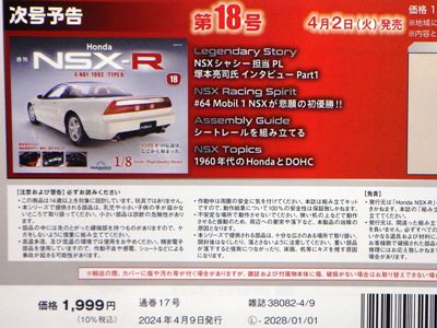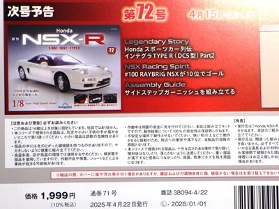 | 1/8 DEAGOSTINI(デアゴスティーニ)「週刊 Honda NSX-R 1992(NA1)」全国版 第3号/\1,999税込 | |