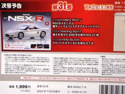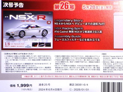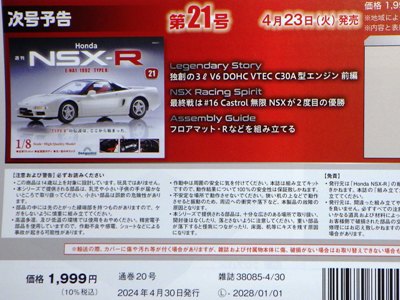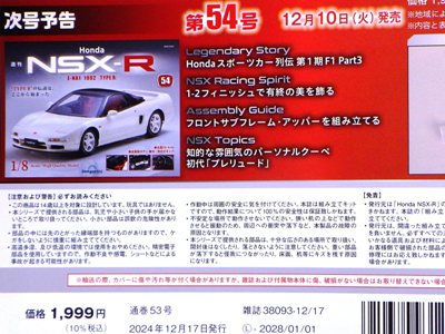 | 1/8 DEAGOSTINI(デアゴスティーニ)「週刊 Honda NSX-R 1992(NA1)」全国版 第4号/\1,999税込 | |