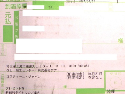 2023年12月26日に配達日指定なしで第4号と一緒に届いた。 実際の発売日は23024年1月4日。 |