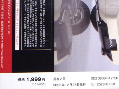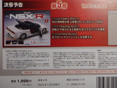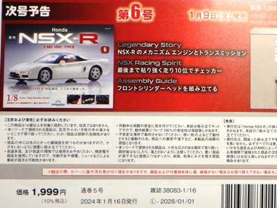 2023年12月26日に配達日指定なしで第5号と一緒に届いた。 実際の発売日は12月26日。 創刊号同様に、宮城・茨城・栃木で2023年3月14日に試験販売された第4号と 同じく、この号からシュリンクパックされて、中身を見ることができなくなっている。 |