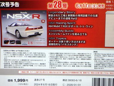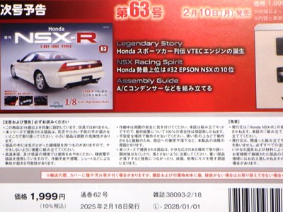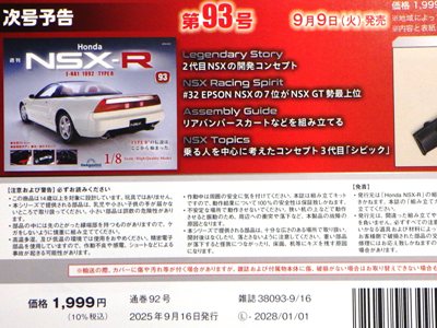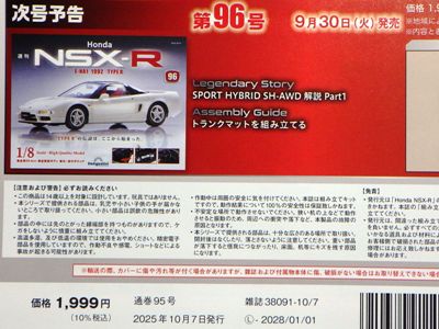 1/8 DEAGOSTINI(デアゴスティーニ)「週刊 Honda NSX-R 1992(NA1)」全国版エコパッケージ 第92〜95号 /各\1,999税込 |