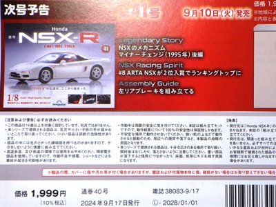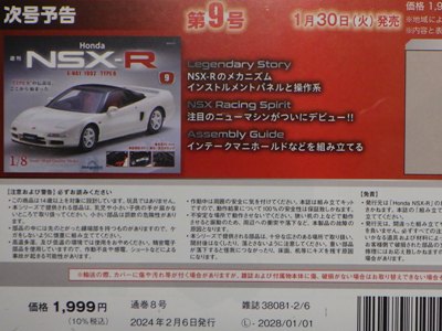 | 1/8 DEAGOSTINI(デアゴスティーニ)「週刊 Honda NSX-R 1992(NA1)」全国版 第9号/\1,999税込 | |
