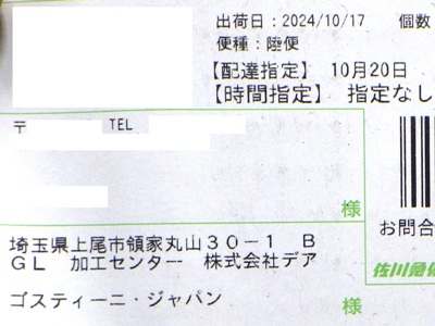 2024年10月17日に発送され、配達日指定日の10月20日に4号セットで届いた。