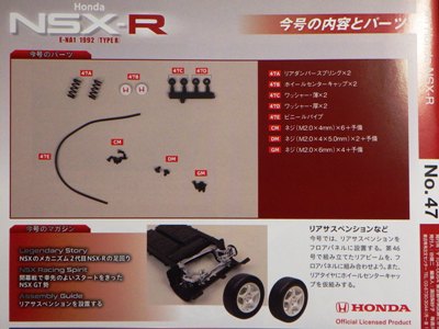 第44号の本来の発売日は10月1日(火)。パーツの内容は右リアタイヤ。 第45号の本来の発売日は10月8日(火)。パーツの内容は右リアサスペンション。 第46号の本来の発売日は10月15日(火)。パーツの内容は右リアブレーキなど。 第47号の本来の発売日は10月22日(火)。パーツの内容はリアサスペンションなど。 |