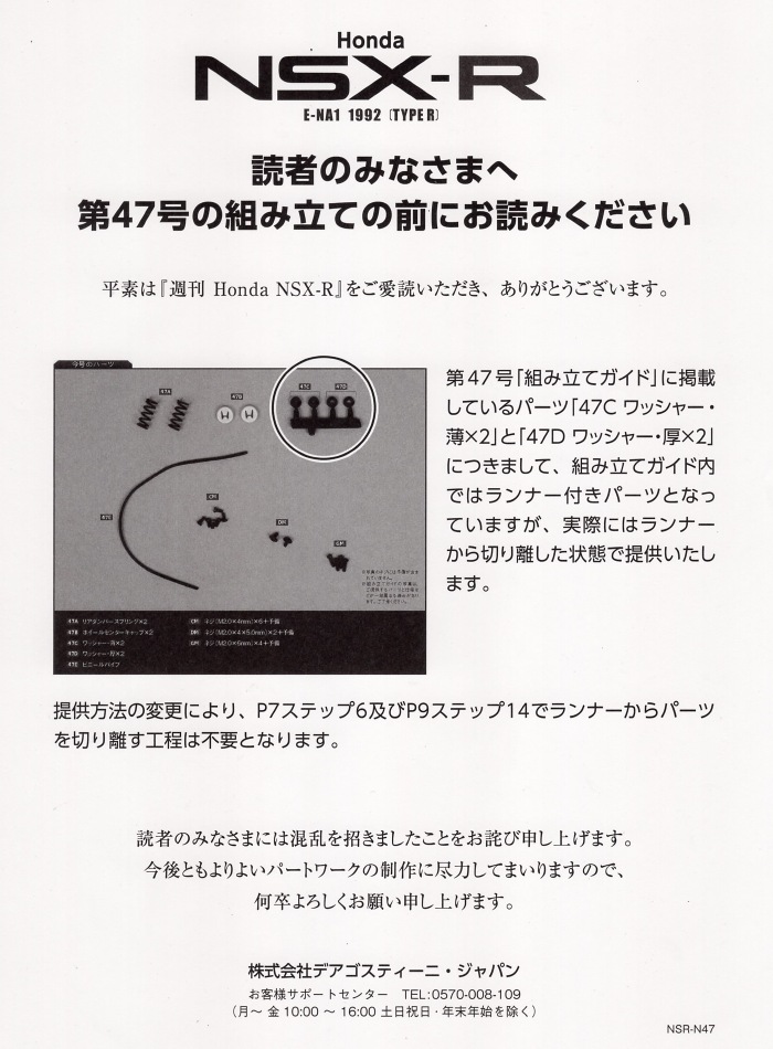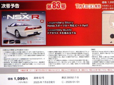 | 1/8 DEAGOSTINI(デアゴスティーニ)「週刊 Honda NSX-R 1992(NA1)」全国版 第7号/\1,999税込 | |