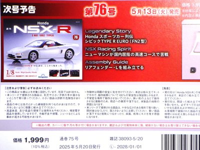 | 1/8 DEAGOSTINI(デアゴスティーニ)「週刊 Honda NSX-R 1992(NA1)」全国版 第5号/\1,999税込 | |
