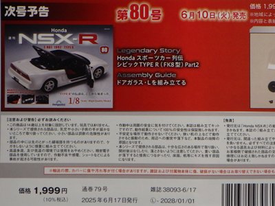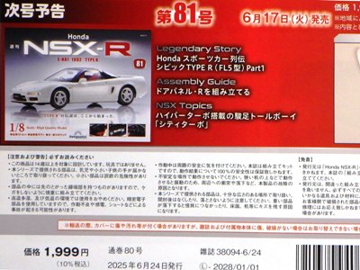 | 1/8 DEAGOSTINI(デアゴスティーニ)「週刊 Honda NSX-R 1992(NA1)」全国版 第6号/\1,999税込 | |