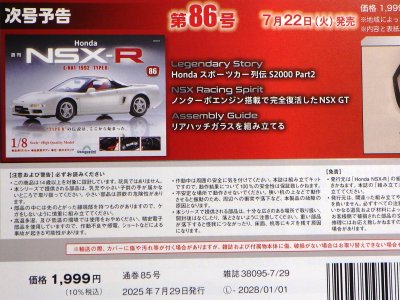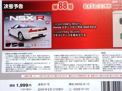 1/8 DEAGOSTINI(デアゴスティーニ)「週刊 Honda NSX-R 1992(NA1)」全国版エコパッケージ 第87〜91号 /各\1,999税込 |