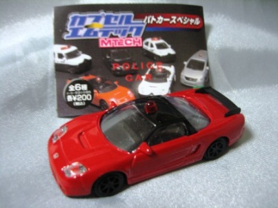 | 2005年4月23日発売。全7種あるパトカーの中にカプセルエムテック9と同タイプのパトあり。9が大阪府警であったのに対し警視庁仕様。ノーズに警察の紋章が入り、リアのホンダマークとNSX-Rロゴは消えた。 | |
