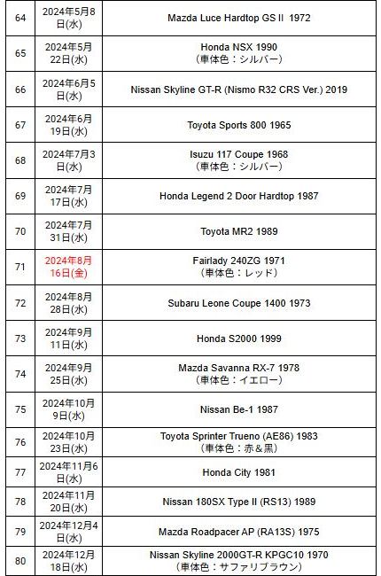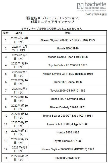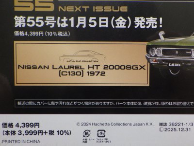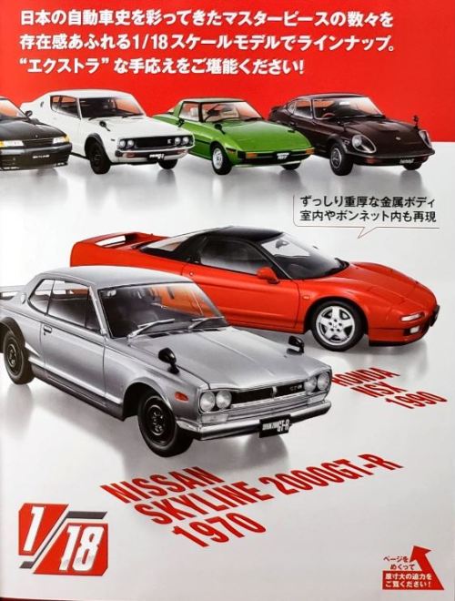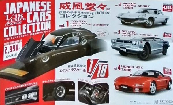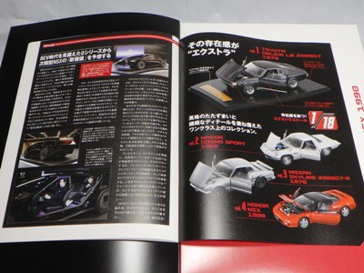 2021年3月7日に広島限定で試験販売が開始され、その第2号として3月22日にNSX1990が発売された商品の全国版。 2021年12月8日に創刊号の「KPGC110型ケンメリGT-R」(1,499円)が発売され、12月22日に第2号として「NSX(NA1)」(2,499円)が発売され、amazonで購入した。 第3号からは3,990円となり、あまりお得感はないが、定期購読特典の「スカイライン2000GT-Rレーシングコンセプト1972」と「トヨタ2000GTボンドカー1966」狙いの方は定期購読が必要。 ネットニュースによれば、ミニカーの製造は自動車や戦闘機などのスケールモデルを手がけているエスワンフォー社とのこと。 あまり聞き慣れないメーカーだが、2009年に設立された東京の会社で、ホビー、トイ、キャラクターライセンス、ファッション、アクセサリー等色々と取り扱っているようである。 しかし、今回入手した商品を確認すると試験販売版と同じくマカオのIXO(イクソ)製と思われ、プレミアム用に各パーツのディテールアップを行ったのがエスワンフォー社なのかもしれない(試験販売版発売時にご報告したように、リアライトの細かなディテールや、サイドダクトのモールドやホイールのシャープさなど、改良箇所がいくつか見られる。 基本的に試験販売版とは、パッケージの日付変更やQRコードの追加以外は、まったく同じ商品。 パッケージの車の画像部分と封蝋風のスケール表示部分の特殊なコーティングも同じ。 付属冊子で異様なほどに定期購読を勧め、定期購読特典の「スカイライン2000GT-Rレーシングコンセプト1972」と「トヨタ2000GTボンドカー1966」の画像が繰り返し登場するのも同じである。 |