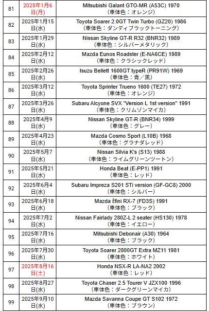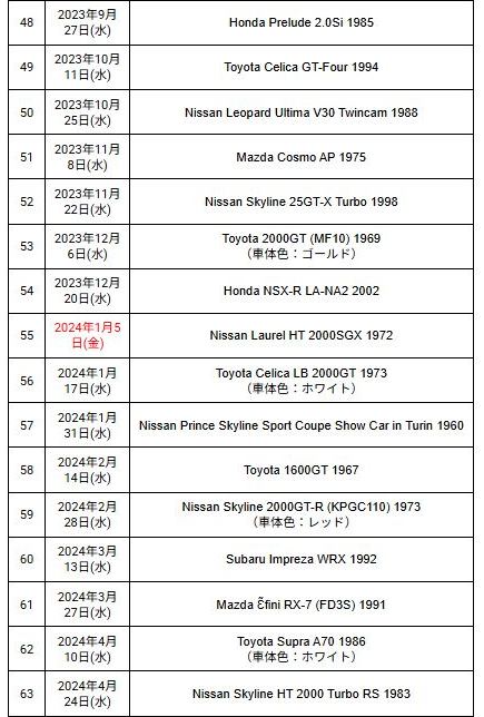 2024年8月6日に訪問した兵庫の出石そばのお店「近又」で順番待ちをしているときに、お隣の書店にふらりと入ったら、入口にうず高く積まれていたのが、アシェットの1/43国産名車プレミアムコレクションシリーズだった。 その一番上に乗っていたのがNSX-Rだったので、これはいつ発売のやつだっけ…?とスマホを取り出し、自分のサイトで検索したら載っていなくてビックリし即購入した。 2021年3月22日に試験販売版の第2号「NSX1990レッド」を入手し、その後2021年12月22日に全国販売版の第2号「NSX1990レッド」も無事入手できたので安心していたら、2023年12月20日に第54号として発売されたのが、この「NSX-R2002ホワイト」であった。 さらに調べてみたら、2024年5月22日に、第65号として「NSX1990シルバー」が発売されていたことも判明し、amazonに在庫があったのでこちらも無事購入することができた。 ちなみに第2号は2,499円、第54号は4,399円、第65号は4,599円と値上がりが酷い(いずれも税込価格)。 |